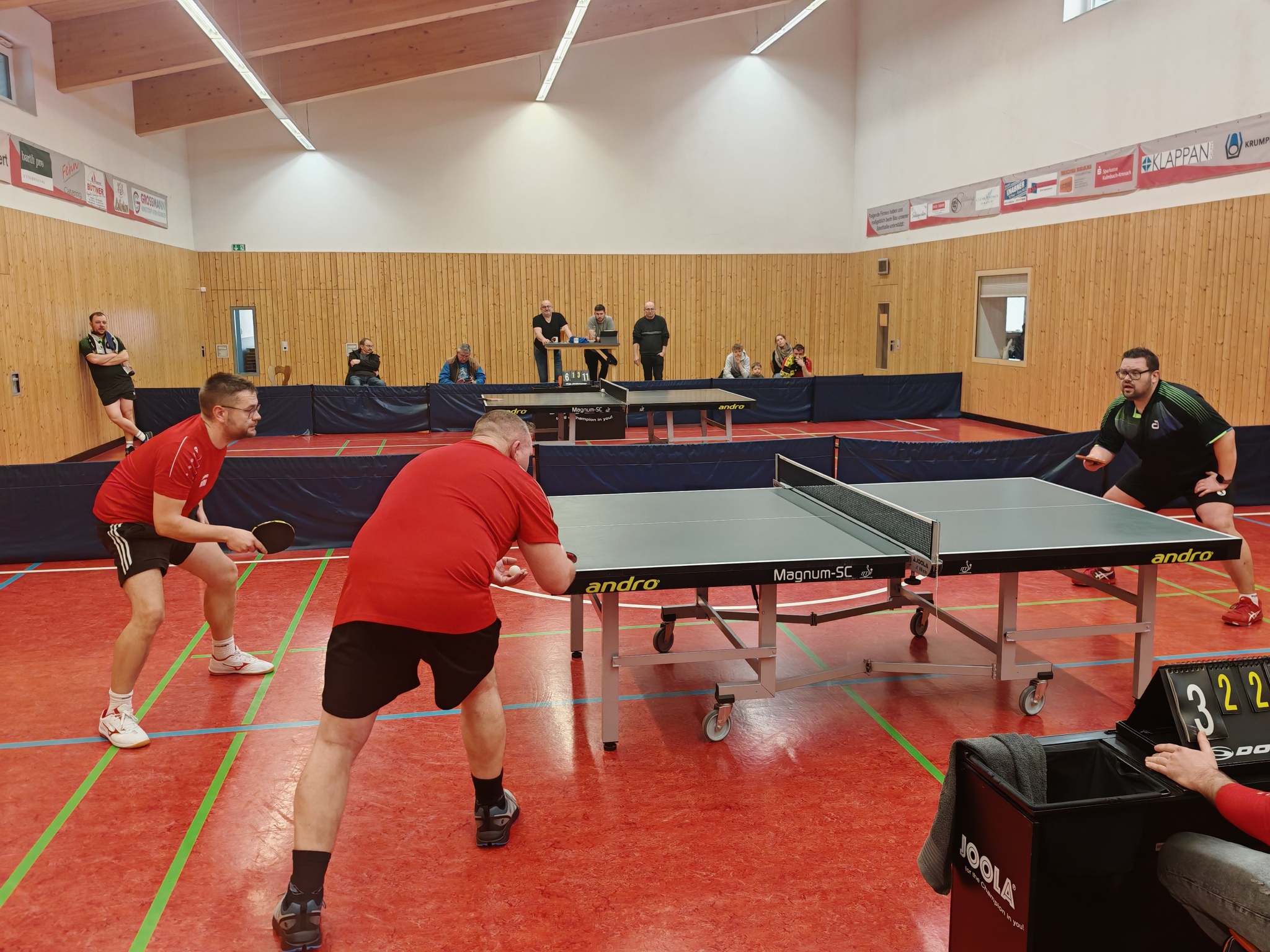 Donnerstag erkämpfte sich die Sechste zuhause gegen Stockheim 3 ein Unentschieden. Die Doppel gingen beide im Fünften weg, aber im Einzel holten Andi und Paul je zwei Zähler, Max gewann einmal. Tüchtich!